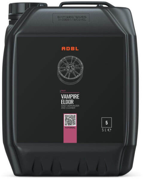 Az ADBL Vampire Elixir egy pH-semleges kémhatású, rendkívül csúszós gél a felnik rendszeres, akár napi takarítására. Tökéletes a fékpor és az útról felkerülő szennyeződések eltávolításához. Az új formulája hihetetlen erőt és rendkívül nagy tapadást biztosít, így sokkal hatékonyabb mint a társai. Korróziógátló adalékokat is tartalmaz, így kevésbé lép reakcióba a féktárcsával és egyéb fényezetlen fém felülettel. Amikor a termék reakcióba lép, színe lilássá változik. Szennyezettségtől függően érdemes autókozmetikai ecsettel eldolgozni a felületen, a síkosító anyagok meggátolják, hogy ez karcokat okozzon. Magasnyomású vízsugárral maradéktalanul leöblíthető.