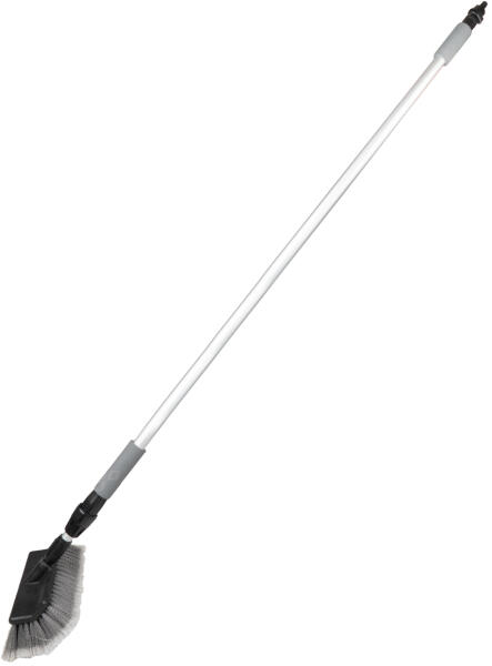 Termékleírás Robusztus teleszkópos kefe alumínium rúddal, 145-250 cm között állítható hosszúsággal. Az ecset puha szálakból készült, amelyek nem károsítják a festék felületét. A rúd habszivacs fogantyúkkal, gyorskioldó tömlőcsatlakozóval és vízáramlási szeleppel rendelkezik. MŰSZAKI ADATOK: - Kefe: 26x12cm - Sörte magasság: 6 cm - Kihajtott hossz: 250 cm - Alumínium rúd - Csúszásgátló fogantyúk - Szelep állítható víznyomással - Gyorscsatlakozó a víztömlő csatlakoztatásához