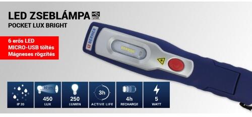 Kétfunkciós Berner led lámpa, az oldalán világító legújabb generációs nagy fényerejű 6 LED-del és az egyik végén egy fényes 1 W-os "High Power" LED spot 600 LUX. Három beépített mágnes (kettő az oldalán és egy a végén) segítségével minden vas felületre feltapasztható és a csuklós elforgató mechanizmusnak köszönhetően bármilyen világítási helyzet beállítható vele. Két beépített kihajtható kampóval bárhová felakasztható. Micro USB töltőcsatlakozón keresztül tölthető. (A töltő nem tartozék!)