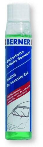 Egy flakon Berner nyári szélvédőmosó koncentrátum (40ml) és víz hozzáadásával 4liter szélvédőmosó folyadék állítható elő. A speciális adalékanyagnak köszönhetően javítja a tisztítóhatást és megakadályozza a fátyolképződést, a vakító hatásokat. Gyorsan és biztosan eltávolítja a rovarmaradványokat, zsírt, szilikont és sok más szennyeződést. Javítja a csúszó viselkedést és megakadályozza az ablaktörlő dörzsölését. Megszünteti a vízkőlerakódásokat és biztosítja az ablakmosó szerkezet optimális működését.