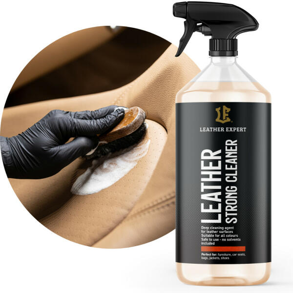 - professzionális és fogyasztói használatra A Leather Expert Strong Cleaner különféle sima bőrtípusok tisztítására szolgál autókban, bőrbútorokbon, rövidáru- és kézitáskákbon. A Strong Cleanerhez tartozó speciális applikátornak köszönhetően bőséges és stabil habot hoz létre, hozzájárulva a kiváló tisztítási eredményekhez. A termék környezetbarát, ökológiai, biológiailag lebomló, állatokon nem tesztelt. A Leather Expert Strong Cleaner erős tisztító tulajdonságokkal rendelkezik. Ne használja velúron és nubukon.