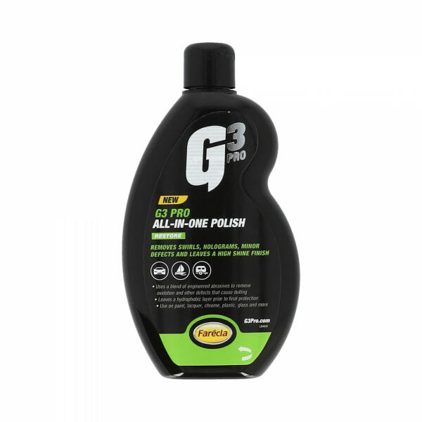 MEGJEGYZÉS: A G3 Pro All-In-One-Polish nem matt felületekhez készült! Termék információk:Gyártói cikkszám:78072760456Mennyiség:500 mlTermékkód:7251Csomagolási egység:6 Dbvideo type="youtube" width="480" height="270" autoplay="0"https://www. youtube. com/watch?v=A41D_ndpUeM&t/video