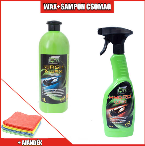 Hydrowax + autósampon csomagEgy gyors de igényes waxoláshoz állítottuk össze ezt a csomagot. A hydrowaxot közvetlenül az autómosása után akár a vizes kasztnira is fel lehet vinni. Ha szereted tisztán tartani az autód akkor erre az autós hydrowax + autósampon csomagra biztosan szükséged lesz!Ha nem te szeretnéd összeválogatni a termékeket, akkor az előre összeállított csomag tökéletes választás.  Úgy állítottuk össze a csomagot, ahogyan mi is használnánk őket egy egy tisztítási munkához. Ár érték arányban a legjobb termékeket tartalmazzák.  A csomag tartalmaz egy hydrowax sprayt egy Q11 Autósampont és egy ajándék mikroszálas törlőkendőt.   HydroWax sprayAz autó waxolása egy időigényes feladat, de erre egy átlagos autómosáskor nem mindig jut idő.   A HydroWax kimondottan úgy lett kifejlesztve, hogy nedves kasztnira is fel lehet vinni és így is kifejti hatását. Az autó alapos samponos mosását követően le kell öblíteni kasztnit és ezután a vizes felületre fel lehet permetezni a Hydrowaxot. Így az egész tisztítási folyamat felgyorsítható, hiszen nem kell megvárni a száradást, rögtön mosás után fel lehet vinni a wax réteget. A hydrowax az autón egy fényes víz és portaszító réteget képez. Nem csak a fényezett elemekre lehet felvinni, mehet a gumi, fém műanyag stb elemekre isŰrtartalom:500ml