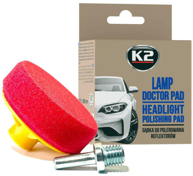 Fúrógépbe vagy elektromos csavarhúzóba  fogható fényszóró polírozó szivacs. Ez a kis 80mm átmérőjű szivacs kifejezetten erre a célra lett kifejlesztve. Az átlagosnál sokkal keményebb felülete, de mégsem roncsolja a fényszóró szerkezetét. Használatához fényszóró polírozó pasztára van szükség. Legoptimálisabb, ha a K2 Lamp Doctor polír pasztáját használja hozzá. Az M14-es csatlakozást szinte az összes fúrótokkmányba be tudja fogatni, így a kompatibilitásban biztos lehet. Hosszú távú munkára tervezték.