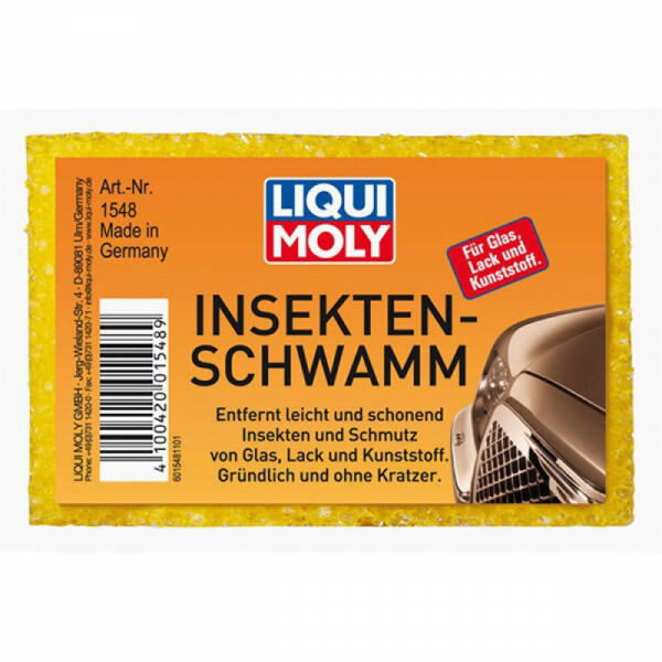 A Liqui Moly rovar eltávolító szivacs karcok nélkül könnyedén és kíméletesen távolítja a rovarokat és egyéb szennyeződéseket az üvegről, lakkozott és műanyag felületekről. A szivacs két oldala eltérő anyagú, hogy a durvább és a finomabb szennyeződéseket is el lehessen vele távolítani.