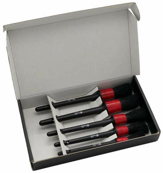 5 méret található egy készletben. A Liquid Elements Detailing ecsetek ideálisak minden nehezen elérhető helyre a jármű belsejében és kívül egyaránt. A Liquid Elements Detailing ecsetek használhatóak a fényezésen, fólián, üveg- és műanyag felületeken, motortérben, felniken, anélkül, hogy károsítanák a felületet vagy karcolásokat hoznának létre. A belső térben is igen nagy hasznát venni a struktúrált műanyag felületeken, bőrön textil szöveten egyaránt.