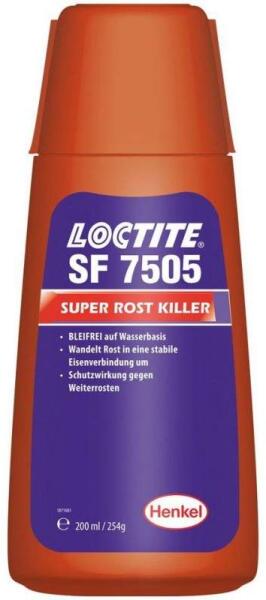 Vizes alapú, gyorsan száradó, szintetikus latex műgyanta bevonat, amelyet rozsdás fémeken alkalmaznak a rozsda megállítására, a felület védelmére és alapozóként. A LOCTITE® SF 7505 (7505 or LOCTITE X-80) egy tejszerű, vizes alapú, gyorsan száradó, szintetikus latex műgyanta bevonat, amelyet rozsdás fémeken alkalmaznak a rozsda megállítására, a felület védelmére és alapozóként a festés előtt. +90 °C (+194 °F) fokig folyamatosan, és +120 °C (+248 °F) fokig rövid időkre ellenáll a hő okozta öregedésnek.