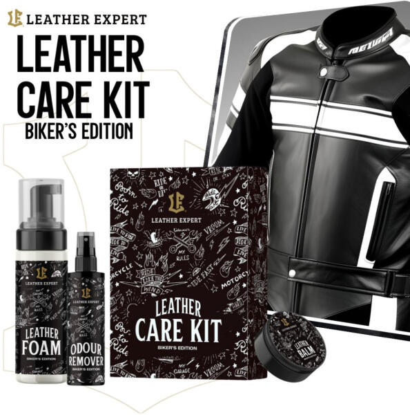 1. Leather Foam 200 ml – gyengéd tisztító bőr motoros ruhákhoz és bőr kiegészítőkhöz. Hatékonyan eltávolít mindenféle foltot, szennyeződést és rovarokat a bőrfelületekről. Semleges PH-val rendelkező termék, bármilyen bőrszínhez alkalmas. 2. Leather Cleaning Wipes – törlőkendők, amelyek gyorsan és hatékonyan távolítják el a mindennapi szennyeződéseket a bőrdzsekikről, cipőkről, kesztyűkről, nyeregtáskákról és motorkerékpárok bőrkárpitjáról. Ideális a kesztyűtartóba, zsebekbe utazás közben. 3. Leather Expert Balm – bőrfelületek ápolására és védelmére szolgáló balzsam. A termék védi a bőrt a kiszáradástól, repedéstől, nedvesség behatolásától, szennyeződéstől és véd az UV sugárzástól. A kiváló minőségű tápanyagok mélyen behatolnak a bőrbe, visszaállítják annak puhaságát és rugalmasságát, hosszan tartó védelmet biztosítva. Felszívódása után a balzsam elegáns szatén felületet hagy maga után. Előnyök: - hatékonyan táplálja a bőrt