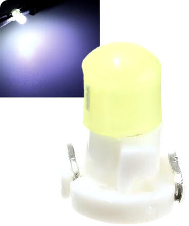 Ez a típus egy hideg fehér fényű LED izzó, amely T3 foglalatba illeszkedik, és 12 V-os járműrendszerekhez lett tervezve. A COB technológia lényege, hogy a LED-chipeket közvetlenül az alaplapra helyezik, így sokkal homogénebb, szórtabb és fényesebb világítást biztosítanak, mint a hagyományos LED-megoldások. Ez különösen fontos a műszerfalak, kezelőpanelek vagy kapcsolók háttérvilágításánál, ahol a fény egyenletessége nemcsak esztétikai, de használhatósági szempontból is döntő.