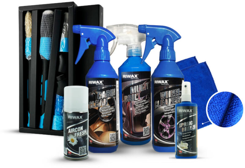 A Riwax Őszi Nagytakarítás csomag tökéletes választás, ha autója belső terét szeretné alaposan kitisztítani és felfrissíteni az őszi szezonra. A csomag tartalmazza a Cabin Clean belsőtér tisztítót , a Multi Brill műanyagápolót , a Spring Breeze légfrissítőt , az Aircon Fresh fertőtlenítőt , hogy utazása során maximális komfortban részesüljön. A mikroszálas kendők és az ecsetkészlet segíti a precíz tisztítást minden részletnél. A Wheel Cleaner kerektisztító pedig tökéletes megoldást nyújt, hogy gyorsan és hatékonyan szabadítsa meg autóját az utazás során a kerekekre rakódott makacs szennyeződésektől.