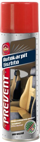PREVENT autókárpit tisztító aerosol: Tartalma: 300 ml e, Méret: 5,6 cm x 28 cm, Súly:0,39 kg Paraméterek, tulajdonságok:propán-bután hajtógáz, anionos tenzidek, polimer diszperzió, illat, víz. Felhasználási terület:A termék mélyen a szálak közé hatolva távolítja el a szennyeződéseket a természetes és műszálas alapú kárpitból, szőnyegből. A felület visszanyeri eredeti tisztaságát, élénk, selymes színeit. Az aeroszol hagyományos szórófejes és speciális tisztítókefés változatban egyaránt kapható. Használata:A kárpitot alaposan porszívózzuk ki! Az aeroszolt rázzuk fel! A szórófejes terméknél a palackot fejjel lefelé fordítva egyenletesen permetezzük be a felületet, majd szivaccsal vagy kefével jól dörzsöljük át! A tisztítókefés termék használatakor a palackot fejjel lefelé fordítva, a szórófejet benyomva, a kefét körkörösen mozgatva egyenletesen oszlassuk el a habot, majd alaposan dörzsöljük át a felületet! Száradás után a tisztított kárpitot ismét keféljük át, vagy porszívózzuk ki! Makacs szennyeződés esetén a tisztítást ismételjük meg!
