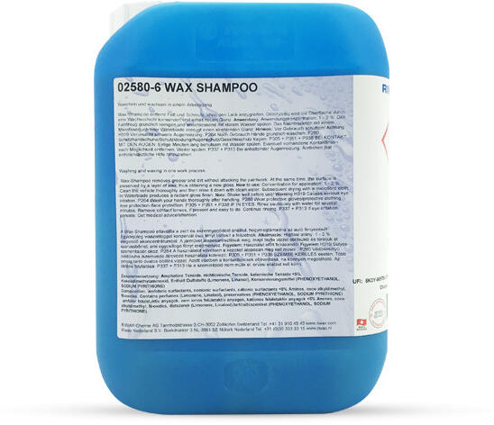 A Riwax Wax Shampoo egy kiváló minőségű, hígítható fényesítő automosó sampon, amelyet autókozmetikai vállalkozások számára fejlesztettek ki. Speciális formulája eltávolítja az olajat, zsírt, port és egyéb lerakódásokat, miközben viaszos védőréteget képez a kezelt felületen, ezáltal csíkmentes tisztaságot és maximális ragyogást biztosít a járműnek. Az egyszerű használatnak köszönhetően az autó külső felületei rövid idő alatt tiszták lesznek és ellenállóbbá válnak a szennyeződések újboli lerakódásával szembem. Ideális választás mind az otthoni autóápolók, mind az autókozmetikai vállalkozások számára, akik a legmagasabb minőséget kívánják elérni.