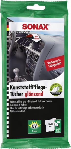 A Sonax fényesítő kendők nemcsak műszerfalra, hanem egyéb belső műanyag, gumi és akár faburkolatok ápolására is alkalmasak. Használatuk egyszerű: nincs szükség további eszközökre, kendőre vagy polírozóra – elég csak kinyitni a csomagot, elővenni egy kendőt, és áttörölni a felületet. Az alkalmazás után a műszerfal enyhén fényes, esztétikusan ápolt hatást kap, amely nem zavaró a vezetés során, de mégis vizuálisan frissíti a belső tér összképét. A kendők friss illatot is hagynak maguk után, így a járműben tartózkodás komfortosabbá válik. Kompakt kiszerelésük miatt ideális választás akár utazás közbeni gyors tisztításra, vagy tartalékként a kesztyűtartóban.
