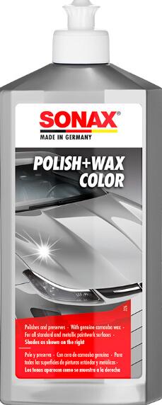 A SONAX Color lakk a festék színének felfrissítésére és a kisebb karcok elfedésére szolgál. Egy lépésben tisztít, políroz és konzervál. A színpigmentek eltakarják az apró karcolásokat, festéksérüléseket, pl. kavicsokból. Felfrissíti a lakk színmegjelenését, magas fényt ad, hosszan tartó hatással. Élénk színt ad és véd az időjárás viszontagságaitól. Pasztell, fémes és gyöngyház lakkokhoz készült. Rendelhető: piros, kék, ezüst, fehér, fekete.