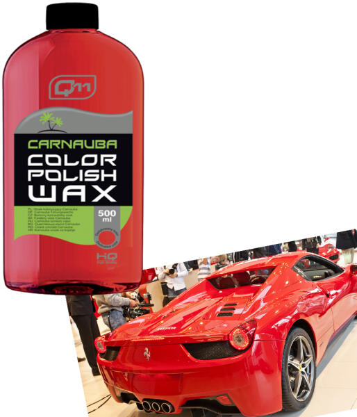 A szinező formulának köszönhetően felfrissíti az autó és motor színét, a karnauba viasz pedig egy ellenálló tartósan csillogó felületet biztosít