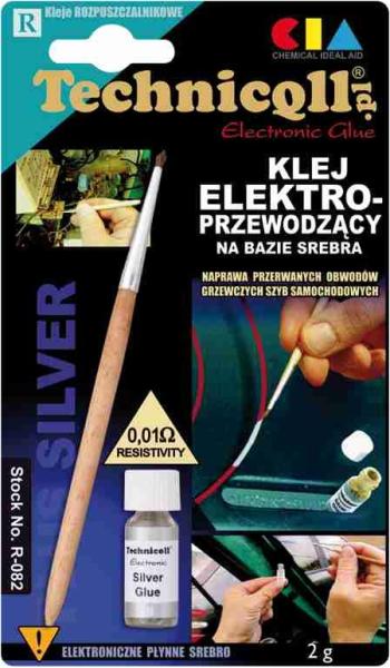 Ezüst alapú, az elektromos áramot vezető ragasztó, amely alkalmas az elektromos és elektromechanikus alkatrészek összeragasztására. Nélkülözhetetlen a gépkocsik ablakfűtő rendszerének elszakadt vezetékeinek javításánál.