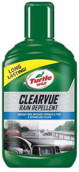 Turtle Wax Clearvue Rain Repellent, Esõ lepergetõ, 300ml A Turtle Wax Clearvue esõlepergetõ krisztálytiszta szilikonok és gyorsan száradó oldószer egyedülálló keveréke, amely egy tökéletesen átlátszó védõréteget képez, amely taszítja az esõvizet, az ónos esõt vagy havat és hatása hónapokig tart.