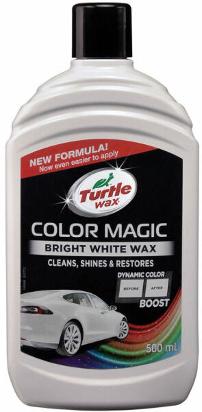 Turtle Wax Color Magic Bright White Car Wax, Polírozó paszta fehér, 500ml Color Magic Plus a világ legfejlettebb autópolírja. Használatával a karosszéria visszanyeri eredeti színét és fényét, eltűnnek a festéken keletkezett karcolások és kopások, valamint eltávolítja a beívódott makacs szennyezõdéseket.
