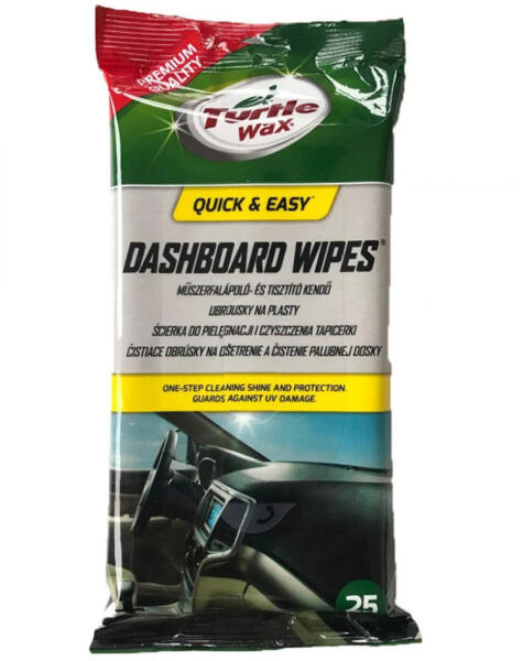 Turtle Wax Dashboard Wipes, műszerfal-ápoló kendő, 25db Véd a káros UV sugarak ellen. Műanyag és PVC felületeken egyaránt használható. Extra erős. Nedvességtartó csomagolás az extra frissességért. Csomag tartalma: