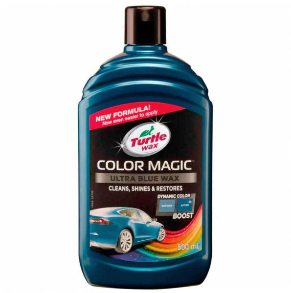 Turtle Wax Fényezés felújító színpolír, kék 500ml Turtle Wax Color Magic 52709 Helyreállítja a fényezés megfakult színét, a holografikus karcokat eltünteti, a mélyebb karcokat átmenetileg fedi.