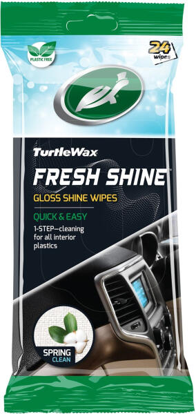 Turtle Wax Fresh Shine Gloss (Fényes) Dashboard Wipes műszerfalápoló kendő- A törlőkendők életre keltik belső műanyagait - Használja a műszerfalon, az ajtóburkolatokon, a műszercsoportokon és más műanyagokon, hogy helyreállítsa fényüket - Antisztatikus pajzsot hagy, amely taszítja a port és a szennyeződést a hosszan tartó tisztaság érdekében - Az újrazárható áramlási csomagolócsomag megtartja a nedvességet, így a törlőkendők frissek maradnak - Kellemes tavaszi tisztaságú illatKiszerelés: 24db kendő / csomag