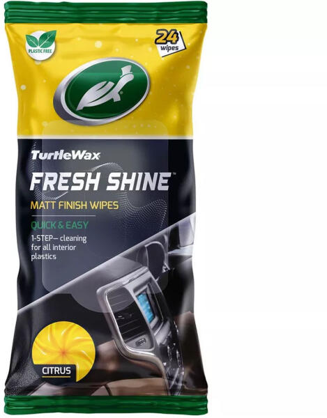 A Turtle Wax® Fresh Shine Matt Finish törlőkendők gyors és egyszerű, egylépéses tisztítást biztosítanak minden belső műanyagelem számára. Használható kemény felületeken, például műszerfalakon, műszercsoportokon, ajtóborításokon, küszöbökön, valamint kemény háttámlájú vezető- és utasüléseken.