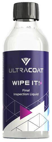 WIPE IT! Wipe It! is a product for final inspection. It is a mixture of specially selected solvents, which is ideal for degreasing the surface after correction of the varnish and before the application of waxes, quick detailers and ceramic coatings. Due to the fact that it is much more effective than IPA, its use is recommended before application of Ultracoat coatings, with which it is 100% compatible. Its composition makes it, apart from the degreasing function, great for removing glue residues and other impurities. Usage: